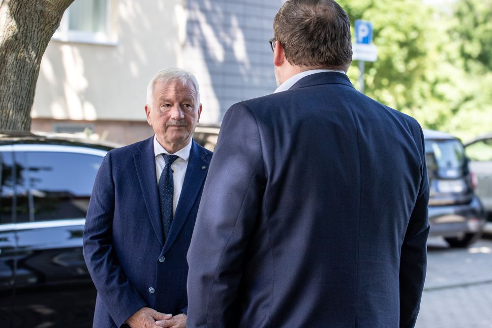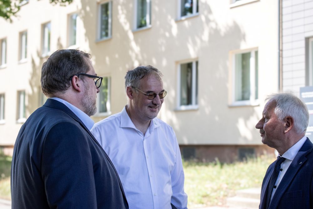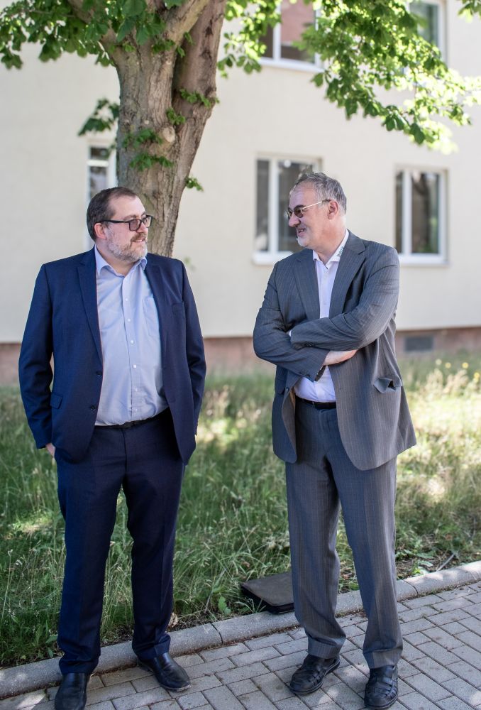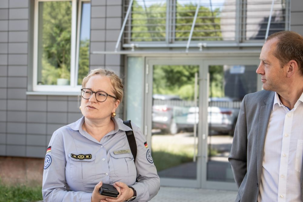 Udo Stöckel, Vorsitzender der THW-Landesvereinigung der Helfer und Förderer des Technischen Hilfswerks in Sachsen und Thüringen e.V. im Gespräch mit Sascha Wenzel (EVB Netze GmbH).