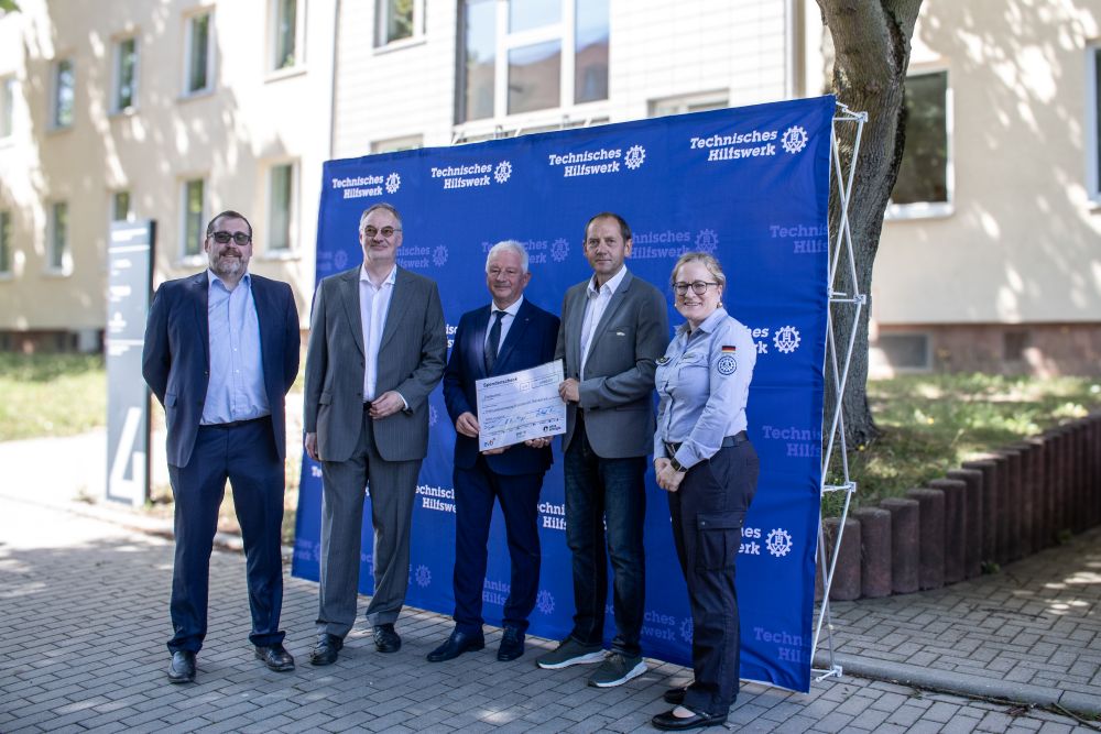 Die symbolische Übergabe der Spende erfolgte am 1. Juli 2025 in den Räumen der THW-Regionalstelle Erfurt. Entgegengenommen wurde sie von Udo Stöckel, dem Vorsitzenden der THW-Landeshelfervereinigung Sachsen und Thüringen e.V. Ebenfalls anwesend war Janine Stock, Landesbeauftragte des THW für Sachsen und Thüringen.