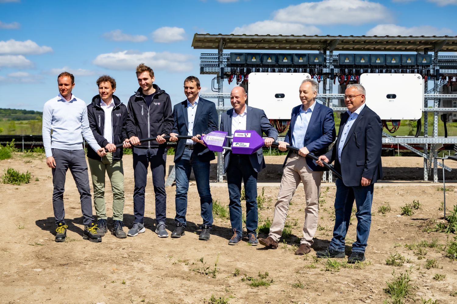 V.l.: René Hippauf (AC-Planung, TEAG Solar GmbH), Marcel Conrad (Projektleiter, TEAG Solar GmbH), Lukas Greifzu (Projektleiter, TEAG Solar GmbH), Chris Maternowski (Stadtwirtschaft Ohrdruf), Stefan Schambach (Bürgermeister Stadt Ohrdruf), Stefan Reindl (Geschäftsführer TEAG Thüringer Energie AG) und Michael Fischer (Geschäftsführer Ohra Energie GmbH und Solarpark Ohrdruf GmbH). Fotograf: Carlo Bansini/TEAG
