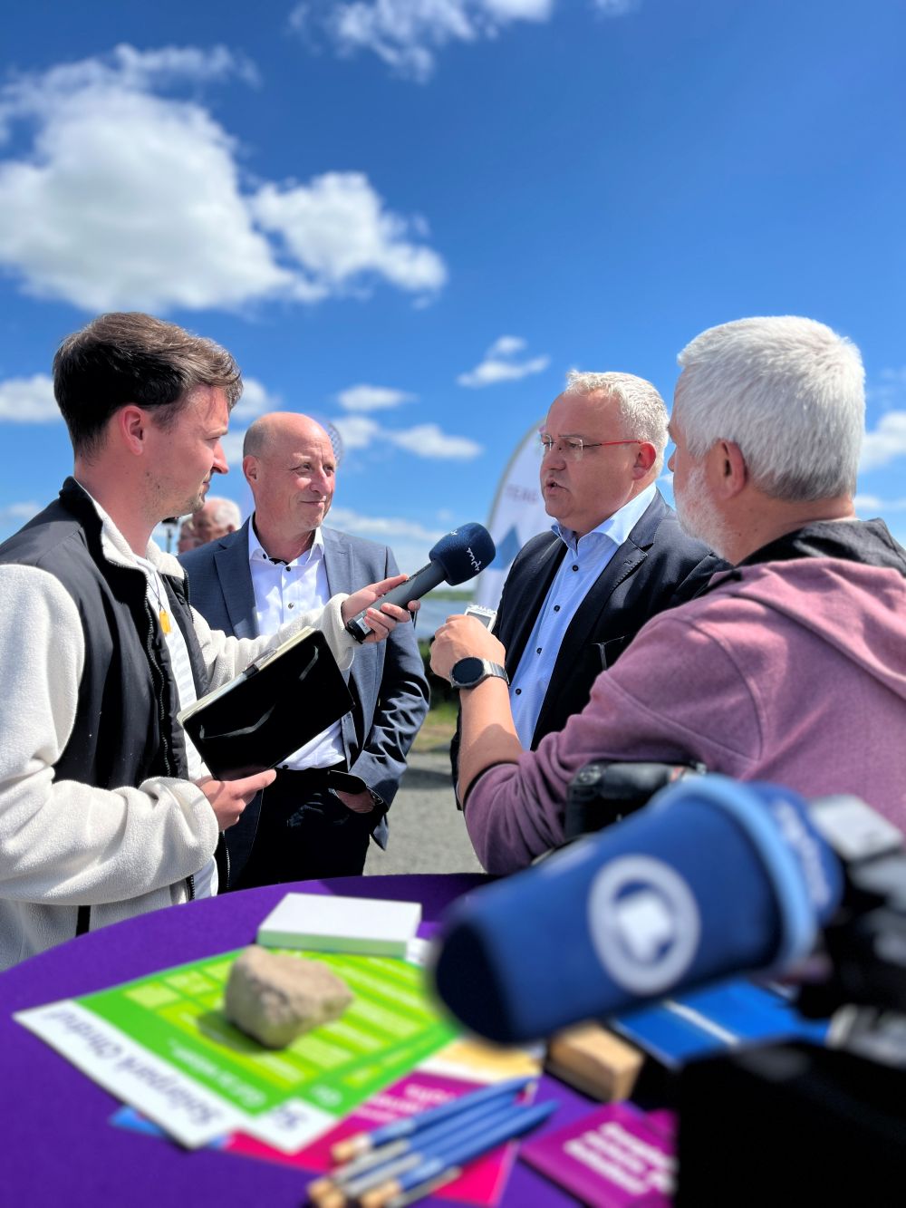 Michael Fischer, Geschäftsführer der Ohra Energie GmbH und der Solarpark Ohrdruf GmbH beim Interview mit der Presse. Links neben ihm steht Stefan Schambach, Bürgermeister der Stadt Ohrdruf. Foto: Christiane Specht