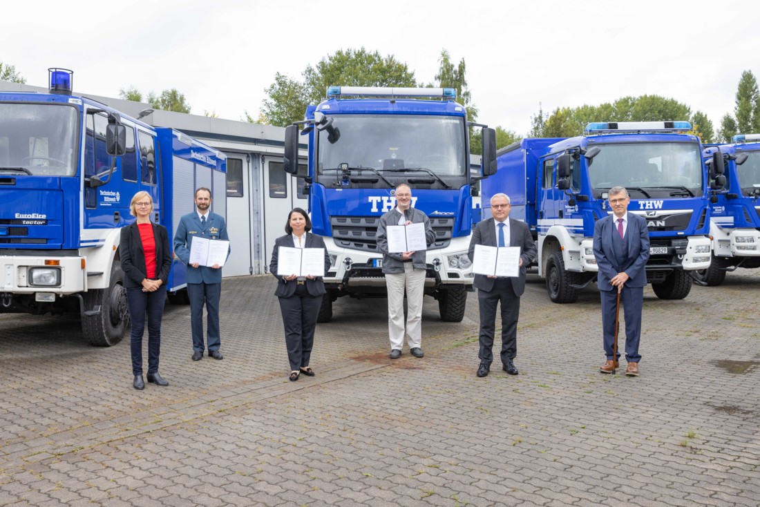 Grundlage hierfür ist die seit über einem Jahr vorbereitete Kooperationsunterzeichnung vom 11. September 2021. Im THW-Ortsverband Eisenach haben sich die Verantwortlichen der Unternehmen und des THW zur Vertragsunterzeichnung unter Beachtung der Hygieneverordnung zusammengefunden. In ihren Grußworten haben der Landrat für den Wartburgkreis, Reinhard Krebs, und die Eisenacher Oberbürgermeisterin Katja Wolf die Bedeutung dieser Kooperation für die Region hervorgehoben. An Unwettern wie etwa in Mosbach im Juni 2021 zeige sich deutlich, wie anfällig die Infrastrukturen in Deutschland sind. Einsatzvorbereitende Maßnahmen wie die Zusammenarbeit zwischen den Energieunternehmen und THW, so der einhellige Konsens, seien das richtige Zeichen, wie mit diesen Herausforderungen zielgerichtet umgegangen werden kann.