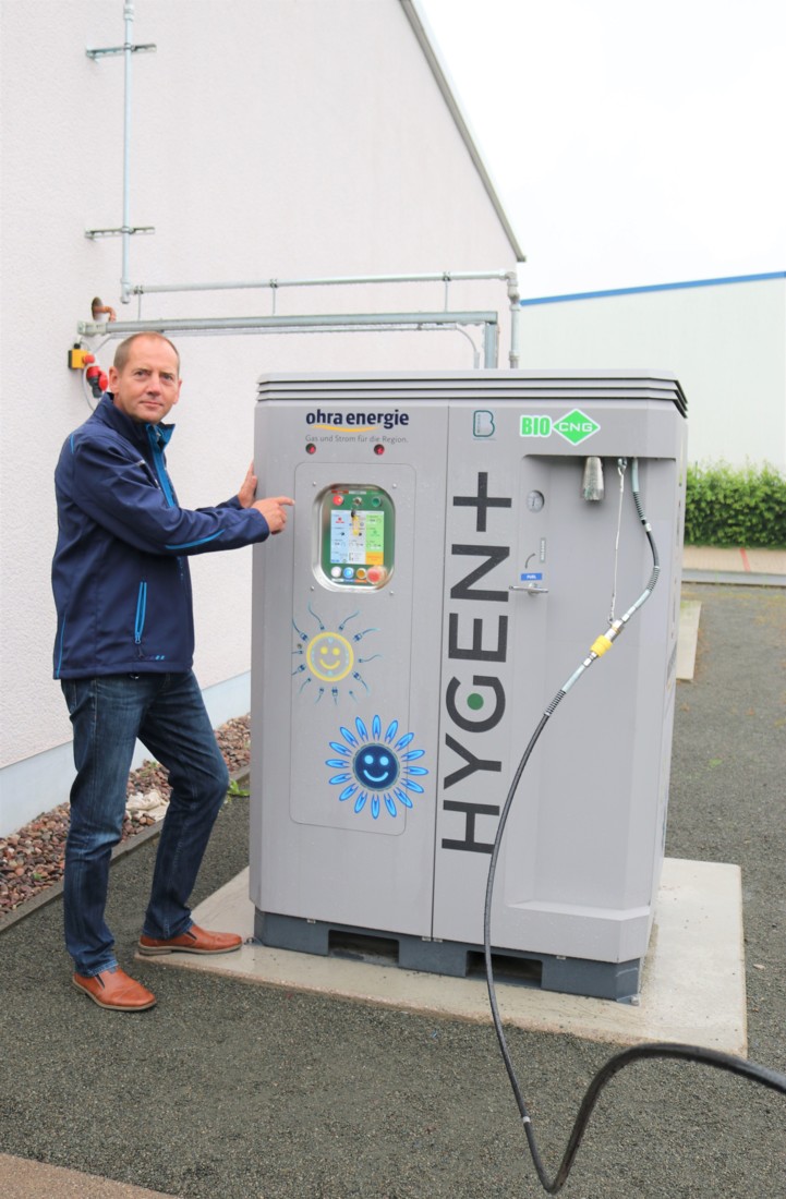 „Ohra Energie vertankt an der Anlage Biogas aus ihrer eigenen Biogasaufbereitungs-anlage im thüringischen Grabsleben. Zusammen mit dem, für die Verdichtung aus Photovoltaik erzeugten Strom, ermöglicht dieses Konzept eine weitgehend CO2-freie Mobilität für unseren CNG-Fuhrpark.“, so Volkmar Braune, Technischer Leiter und Prokurist der Ohra Energie.