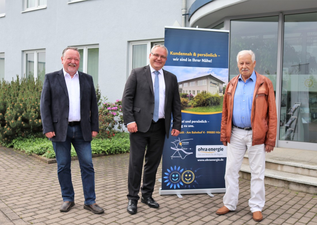 Klaus Reißig, Aufsichtsratsvorsitzender und Michael Fischer, Geschäftsführer der Ohra Energie sowie Klaus Kaufmann, Geschäftsführer der KBO Kommunalbeteiligung Ohra Energie, ziehen Bilanz und blicken auf drei Jahrzehnte erfolgreiche Unternehmensentwicklung zurück.