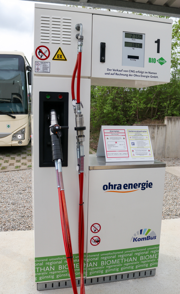 Seit März 2024 sind im Regionalverkehr der KomBus GmbH 15 IVECO Crossway LE mit CNG-Antrieb im Einsatz. Um die Busse zu betanken, hat die Ohra Energie GmbH in Kooperation mit dem regionalen Verkehrsunternehmen an dessen Standort in Saalfeld innerhalb von neun Monaten eine neue bedarfsgerechte Bio-CNG Tankstelle errichtet. Herr Volkmar Braune, technischer Leiter der Ohra Energie erklärt: