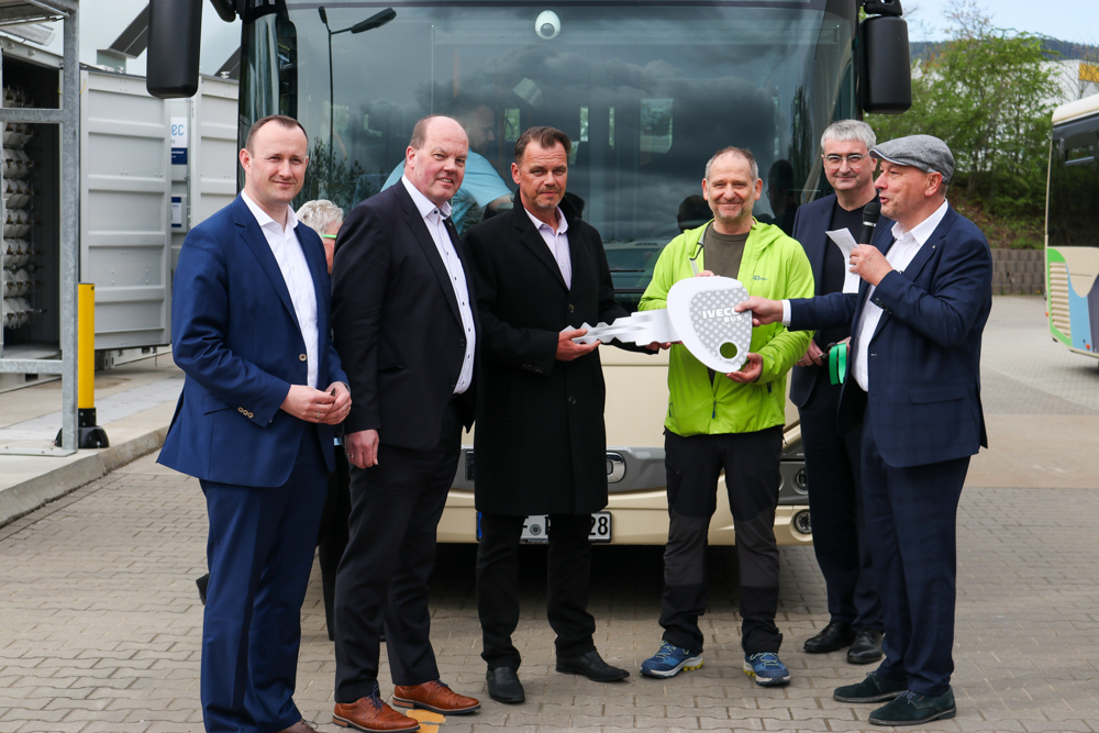 Am 10.04.2024 fand in Saalfeld die öffentliche Inbetriebnahme von 15 CNG-betriebenen Bussen und die Einweihung der Bio-CNG-Tankstelle auf dem Betriebshof der KomBus GmbH statt, dem regionalen Verkehrsunternehmen, das den Linienbusverkehr im Saale-Orla-Kreis, im Umland der Stadt Neuhaus am Rennweg und im Landkreis Saalfeld-Rudolstadt durchführt.