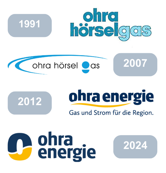 Die Entwicklung des Logos der Ohra Energie GmbH über die Jahre.