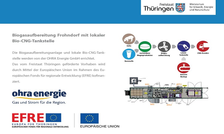 derartige kleinmaßstäbliche Biogasaufbereitungsanlagen mit regionaler Biogas/CNG-Tankstelle wirtschaftlich betrieben werden. „Die CNG/Biogas-Mobilität kann einen signifikanten Beitrag zur Reduzierung der Treibhausgasemissionen leisten und erprobte Fahrzeugtechnik ist verfügbar“, so der Technische Leiter/Prokurist der Ohra Energie GmbH, Volkmar Braune.