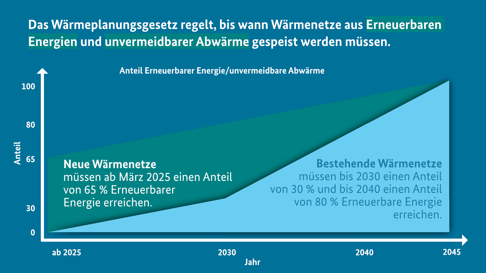 - sind von der planungsverantwortlichen Stelle festzulegen mit der Maßgabe zum Zieljahr ausschließliche Wärmeversorgung aus Erneuerbaren Energien oder aus unvermeidbarer Abwärme erzeugter Wärme